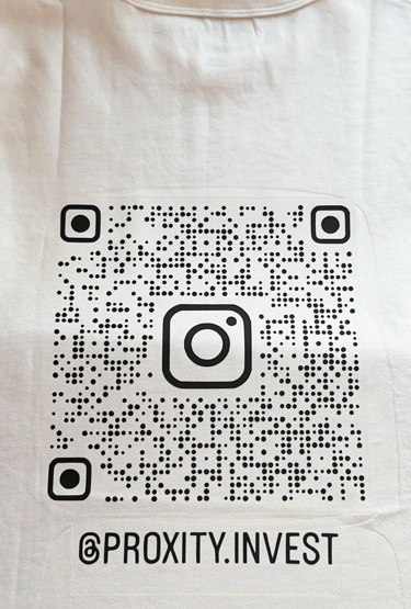 Branded T-shirts featuring the company logo and Instagram QR code